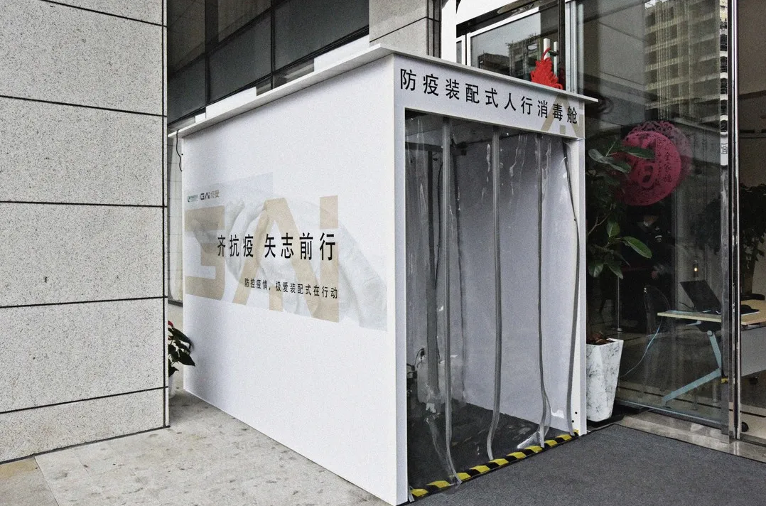 近日,极爱装配式防疫人行消毒舱在金色西溪商务中心C座投入使用。严守复工关口、加强员工管理,极爱有条不紊地进行着顺利复工的保障工作,旨在为企业复工后的疫情防治工作做一份贡献。